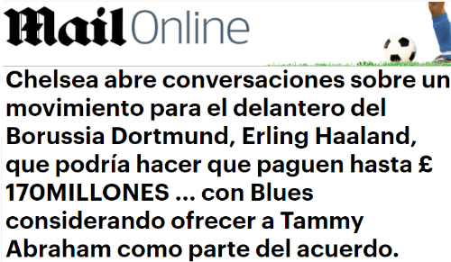 Eso no es todo, porque como si a la oferta le faltara algo, el diario británico reveló que un nombre apareció en las primeras conversaciones. Tammy Abraham, centrodelantero inglés, podría aparecer como forma de pago e irse al Borussia Dortmund cuando Haaland se mude a Londres. ¿Erling a la Premier?
