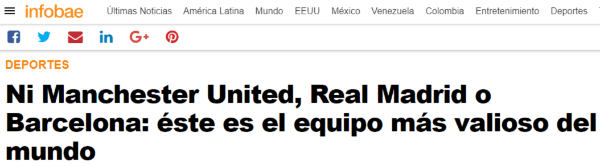 Es increíble. Aún con todo su marketing, los jugadores que poseen y su reconocimiento a nivel mundial, ni el Barcelona ni el Real Madrid son los clubes más caros del mundo.