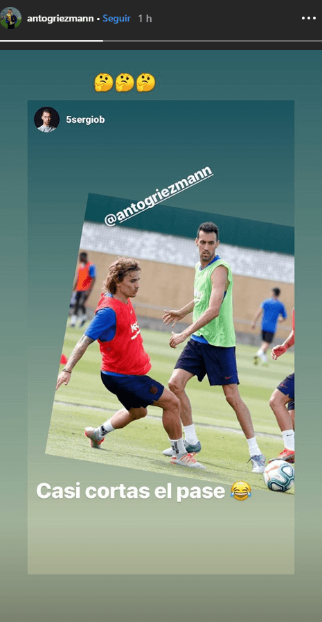 Este miércoles,Sergio Busquetssubió a sus historias de Instagram una foto con Griezmann y lo trolleó: “Casi me cortas el pase”.