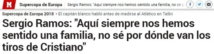 Sin embargo, la cosa no quedó allí, ya que apareció alguien muy relacionado con la institución Merengue para contestarle al jugador portugués. Se trata de Sergio Ramos, emblema del elenco de España.