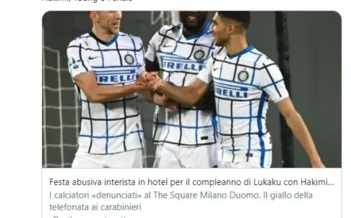 “A las 3.00 de la madrugada, en Milan, después de un aviso al 112, los ‘Carabinieri’ de la Compañía Milan Duomo y del Núcleo Radiomobile han intervenido en un hotel del centro donde se estaba celebrando el cumpleaños del jugador del Inter Romelu Lukaku. Además de Lukaku, se identificó a otras 23 personas, entre las que se encontraban otros jugadores del Inter y al gerente del hotel”, dictaba el reporte oficial de la Policia lombarda.
