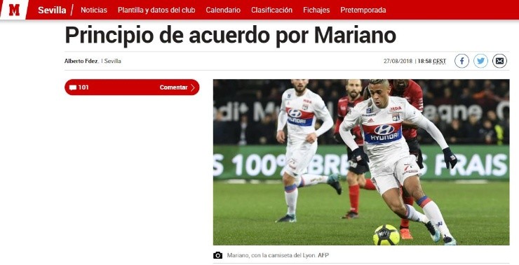 Dicho medio destaca que Mariano ya tendría un principio de acuerdo con el Sevilla para dejar Francia y retornar a España.
