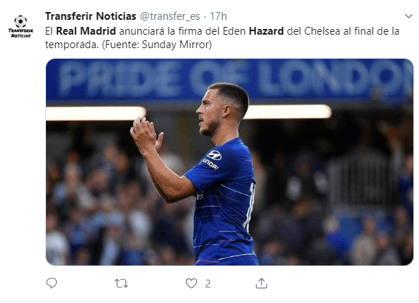 Es que Real Madrid, que ya tendría cerrado el fichaje de Eden Hazard a cambio de 130 millones de euros, esperaría para presentarlo hasta el día de la final de la Champions League, en busca de desviar el foco de atención.
