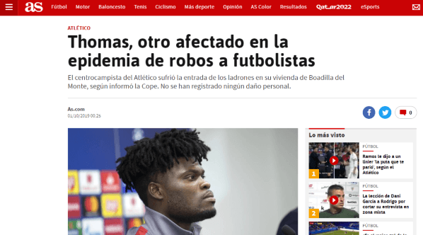 Ahora, hay que sumarle otro asaltó. Esta vez al que le tocó fue Thomas Partey, mediocampista del Atlético Madrid.