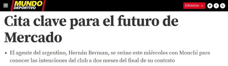 A mediados del actual 2019 el contrato que vincula a ambas partes finaliza y desde Mundo Deportivo aseguraron que el próximo miércoles habrá una “cita clave”.