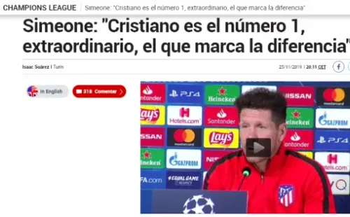 En la conferencia de prensa previa al duelo entre el Atlético Madrid y la Juventus, Diego Simeone sorprendió a todos con sus declaraciones sobre Cristiano Ronaldo.