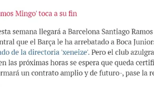 Más allá de los intentos de la directiva de Boca de demostrar judicialmente que Santiago Ramos Mingo es un jugador que le pertenece al club, parece que el juvenil finalmente llegará al Barcelona.