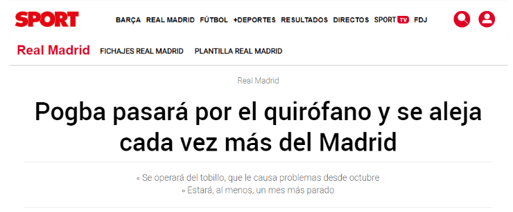 A falta de confirmación por parte del United, todo indica que la operación a la que se someterá el mediocampista lo dejará fuera y aislado de una hipotética salida en el actual mercado de traspasos.