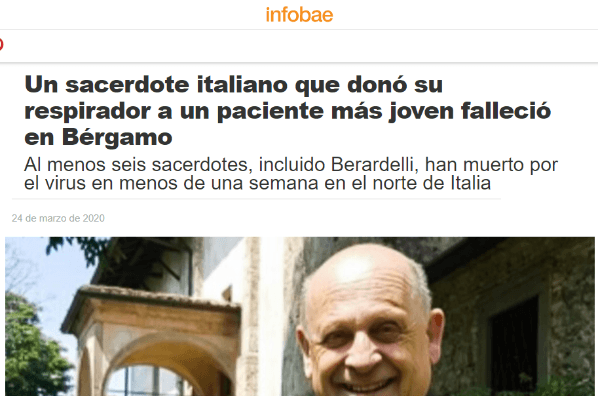 Una es la del sacerdote Don Giuseppe Berardelli que tuvo gesto más que solidario. El hombre de 72 años estaba internado y rechazó a utilizar un respirador.