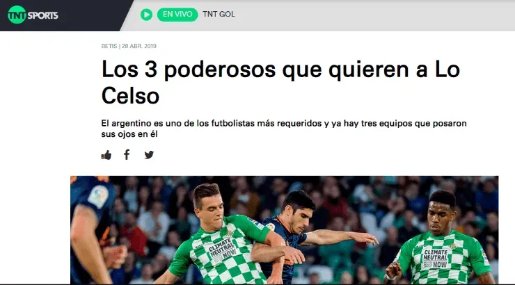 Según comentó TNT Sports, Lo Celso, a base de sacrificio y entrega constante en el Betis, habría generado interés en el Real Madrid, ManchesterUnited y Manchester City en hacerse con sus servicios futbolísticos.