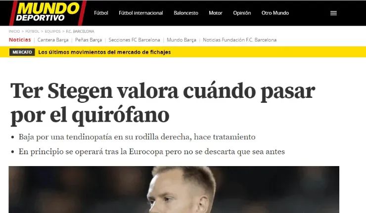 Pese a que hasta el momentologró afrontar dicha problemática en base a un tratamiento conservador, Mundo Deportivo adelantó queMarc-André estaría evaluando la posibilidad de finalmente pasar por el quirófano para afrontar de lleno la lesión.