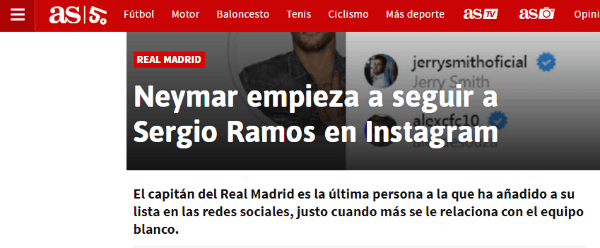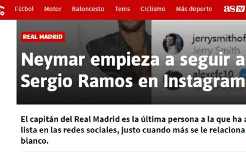Para alimentar los rumores, Ney comenzó a seguir en Instagram a Sergio Ramos, capitán y líder de la Casa Blanca.