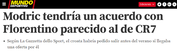 Mundo Deportivo publicó hoy que el volante de la Selección de Croacia tendría un acuerdo con Florentino Pérez muy parecido al de CR7.