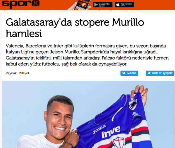 Según el diarioSporx, las conversaciones avanzan yGalatasaray estaría dispuesto a pagar 750 mil euros por la cesión del central colombianopara lo que queda de la temporada, es decir,hasta mediados del 2020.