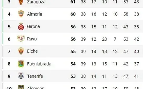 La segunda división de España está apretadísima. A falta de 3 fechas, hay más de 10 equipos peleando por ubicarse entre el tercer y sexto puesto, en donde se juega una promoción por al ascenso.