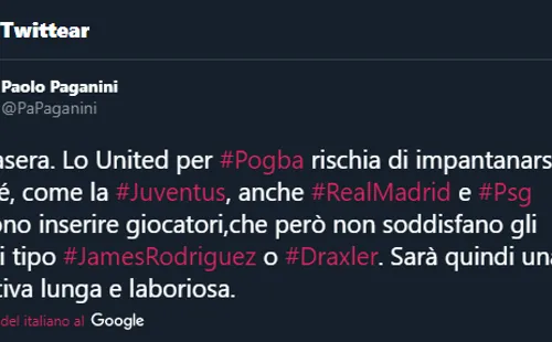 “Lo del United por Pogba está cerca de empañarse porque equipos como Juventus, Real Madrid y PSG quieren incluir el cambio de jugadores que no satisface a los británicos como James Rodríguez o Julien Draxler.Por lo tanto, será una negociación larga y laboriosa”.