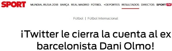 Twitter cerró de manera sorpresiva la cuenta de Twitter del ex jugador del Barcelona Dani Olmo.