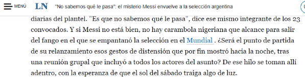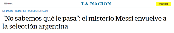 Según publicó La Nación hoy, un jugador de la Selección Argentina, que no dieron el nombre, le comentó al periódico: “No sabemos que le pasa a Messi”.