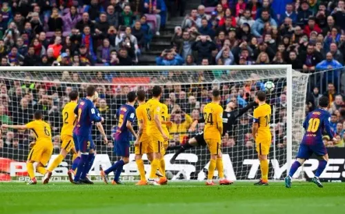 Un fanático que estaba en las gradas del Camp Nou decidió grabar en cámara lenta el momento preciso en que Lionel Messi pateaba el tiro libre que terminó en un golazo contra el Atlético de Madrid.