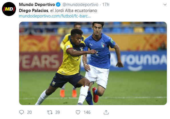La gran participación de Diego Palacios en el Mundial Sub-20 con la Selección de Ecuador, que terminó en tercer lugar, lo puso en la órbita del Barcelona español.