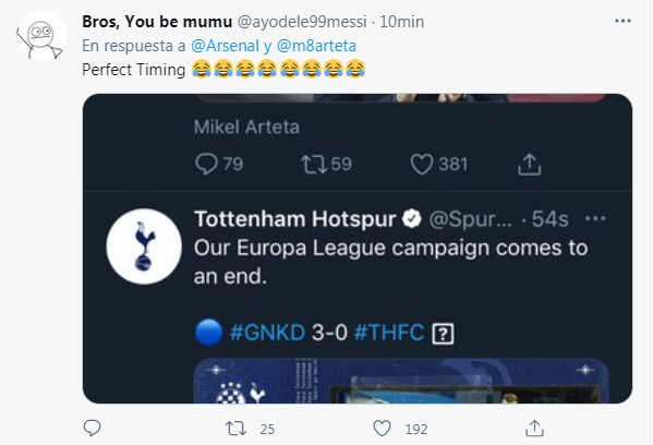 Los eternos rivales del Tottenham tuitearon justo en el momento en que Tottenham quedó afuera de la competición.