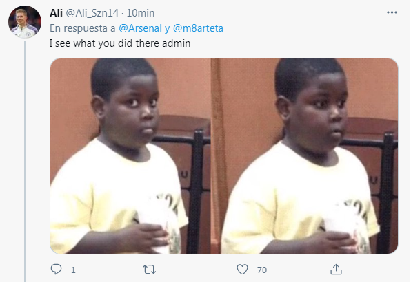 “Pasamos a la siguiente ronda, ¡juntos!”, escribió el CM de losGunners. Y sí, en los comentarios todos se dieron cuenta lo diabólico que es.