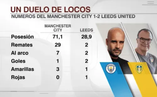 Lo más curioso de la jornada es que el Leeds solo pateó dos veces al arco, justamente en los dos goles. Por su parte, los de Pep Guardiola ensayaron 29 remates, pero solo lograron vencer la defensa deIllan Meslier en una sola oportundiad.