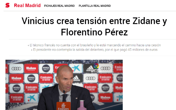El propio Zinedine Zidane cree que lo más conveniente sería ceder al jugador de cara a la segunda mitad de la temporada, porque así podría seguir teniendo rodaje ya que no está en sus planes prioritarios.