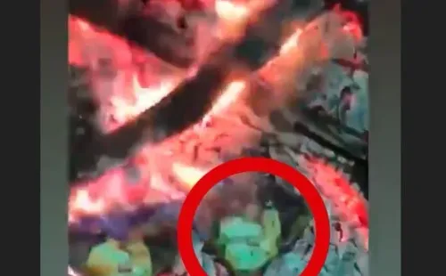En el mismo se puede ver como la empresaria prende fuego dos fotos idénticas de ambos abrazados.