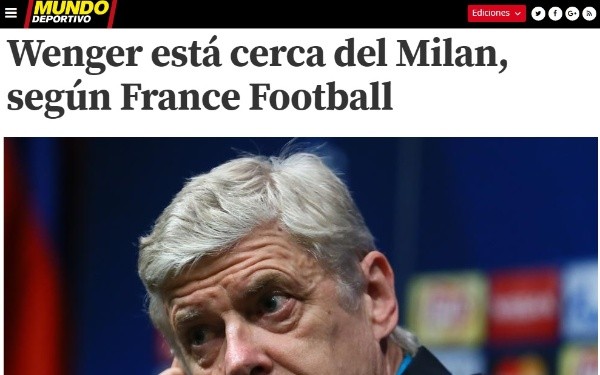 Si bien la situación del Milan no es desesperante tampoco conforma el hecho de no ser protagonista de ninguno de los torneos que disputa. Por ello, las negociaciones con Wenger podrían comenzar muy pronto.