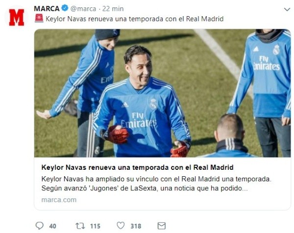 Pese a ello y a los fuertes rumores que indicaban que Keylor quería abandonar el Real Madrid, este tomó la decisión de seguir dando batalla en el club y extender su vínculo.
