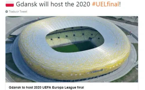 También se determinó que la final de la Europa League de ese mismo año será en el Arena Gdansk de Polonia mientras que la Supercopa, que reune a los campeones de las dos competencias, será en el Do Dragao de Oporto, en Portugal.