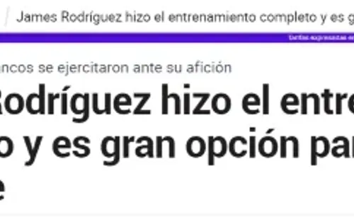Para ese entonces, James no había podido terminar los entrenamientos a la par de sus compañeros, cosa que sí hizo este lunes, en la sede deportiva del Real Madrid, donde pudo completar las sesiones de trabajo con total normalidad.