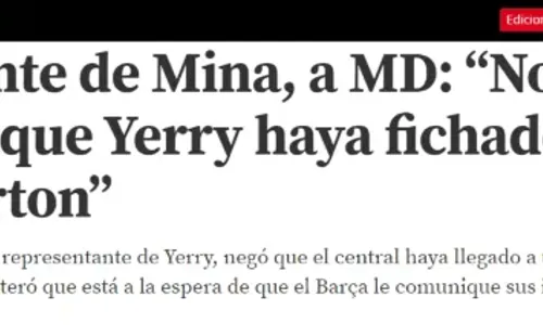 Bueno, su representante y tío,Jaïr Mina, dialogó con Mundo Deportivo y aseguró:“No es cierto queYerryhaya fichado por elEverton”.