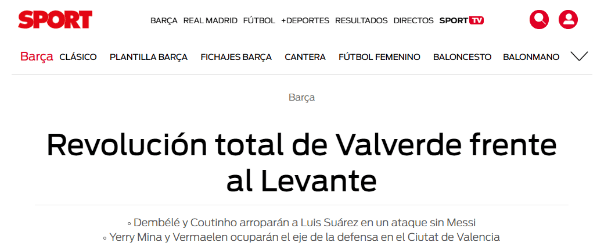 Valverde ya había sorprendido sin tener a Lionel Messisiquiera en la lista de convocados para enfrentar al Levante en el final de una Liga ya ganada hace tiempo por el Barcelona. Pero a poco tiempo del partido, sorprendió poniendo a Yerry Mina como titular en la saga central.