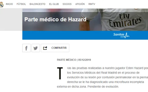 Poco después del susto en el Estadio Santiago Bernabéu, las noticias no mejoraron. El conjunto Merengue sometió al belga a los correspondientes estudios médicos, los cuales determinaron que el mismo sufrió “una microfisura incompleta externa“. Lógicamente, la participación del ex Chelsea en el partido ante el acérrimo rival quedó descartada de forma inmediata.