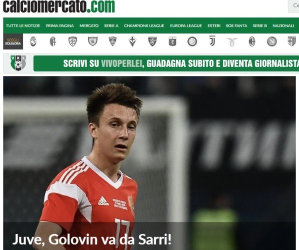 El mencionado medio de comunicación italiano aseguró que Golovinya se decidió por el proyecto liderado por Maurizio Sarrien Chelsea, que pagaría alrededor de 30 millones de euros por sus servicios.