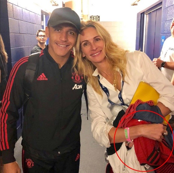 Pero el chileno aprovechó también para codearse con algunas grandes estrellas de Hollywood que son también aficionadas del fútbol. Fue el caso de Julia Robets, a quien le regaló su camiseta en un encuentro camino de los vestuarios que quedó registrado en fotos.