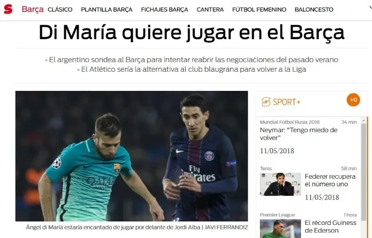 Es que en España aseguran que Di María tiene la intención de mudarse a Barcelona en el próximo mercado de pases. La idea deFideosería marcharse a La Liga de España y la escuadra de Ernesto Valverde es la que más lo seduce.