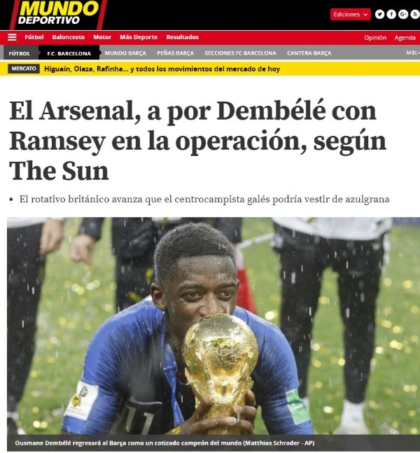 Para convencer al Barcelona, la directiva de los Gunners está manejando la posibilidad de hacer una oferta récord en la historia del club, que además incluiría al galés Aaron Ramsey como parte de pago.