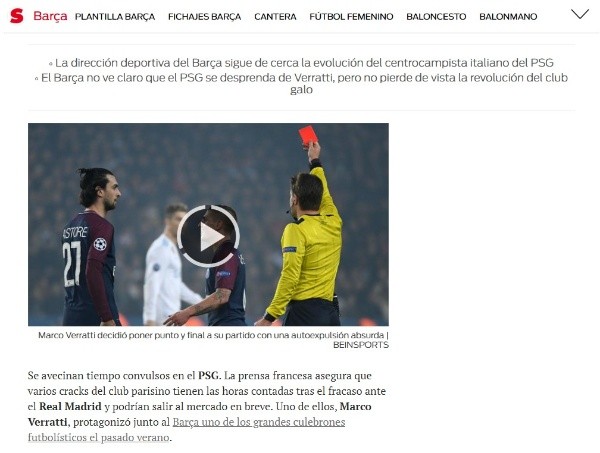 Hace tiempo, demasiado tiempo, que Barcelona sigue sin éxito al italiano Marco Verratti, pues el PSG se mostró siempre reacioa negociar su transferencia. Sin embargo, la eliminación en octavos de final de la Champions League ante Real Madrid ha cambiado, y mucho, las prioridades en el club parisino.