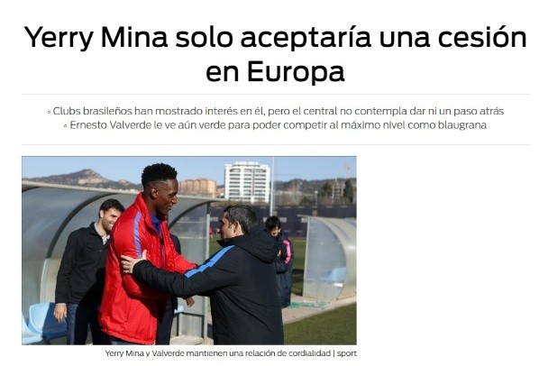 Eso sí, Yerry Mina habría puesto como condición que solo aceptará dejar Barcelona en condición de cedido y si es en otro destino europeo, pasando de las ofertas que el club recibió desde Brasil.
