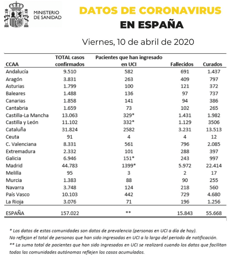 Tomando como posta las cifras exteriorizadas el pasado jueves 9 de abril, el Ministerio anunció que en las últimas horas reconoció el deceso de605 personas -el número más bajo registrado desde el pasado 24 de marzo-. Por otra parte, España, en las últimas 24 horas, confirmó que4.576 personas dieron positivo de coronavirus por primera vez desde el inicio de la pandemia.