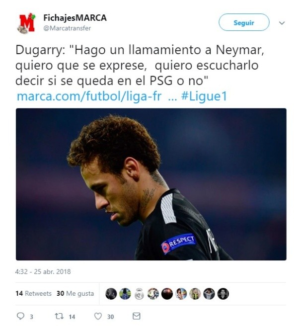 Dugarry se mostró especialmente fastidiado por el papel que ha tomado el padre del brasileño en el asunto:“No nos importa lo que su padre dice.Neymartiene que hacer una declaración para explicarnos si quiere quedarse o no. Por ahora, siempre son otros quienes habla por él”, concluyó.