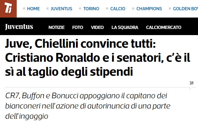 Según reportó Tuttosport, por ejemplo, en las últimas horas Cristiano Ronaldo le habría dado el sí a la Juventus para que su sueldo se vea disminuido provisoriamente.