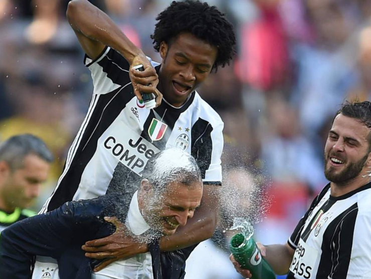 ¿No nos creen? Pues bien, aquí les dejamos tres muestras claras que Cuadrado en un travieso completo. Massimiliano Allegri, Cristiano Ronaldo y Maurizio Sarri han sufrido con las locuras del colombiano cada que consigue espuma para festejar. Todos terminaron completamente untados con el spray diabólico del colombiano.