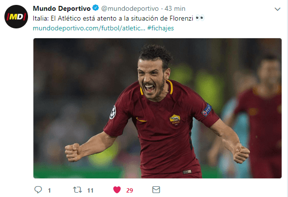 Prueba de ello es el interés en el fichaje del italiano Alessandro Florenzi, de Roma, para reemplazar la más que probable salida del croata Sime Vrsaljko y la vacante que dejará en el lateral derecho.