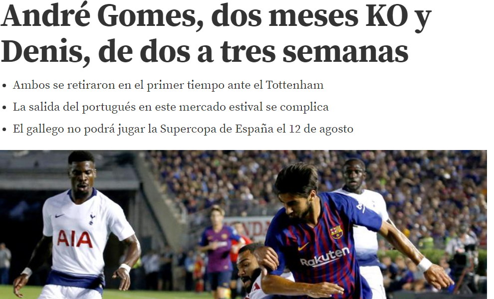 Con esta lesión, Barcelona se despide también de cualquier ilusión que tuviera de transferir a AndréGómez durante el presente mercado de fichajes.