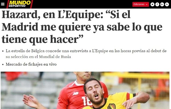 “El Real Madrid puede interesarme, todos los saben, si no me quieren ya no se hablará de eso, pero si me quieren fichar ya saben lo que tienen que hacer”, exteriorizó el crack que tiene el seleccionado belga.