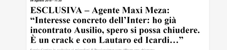 “Tuve un encuentro con un dirigente deportivo del Intery me mostró un interés concreto por Meza. ElPupiZanetti(vicepresidente del club) conoce su calidad, sabe que es un crack, un jugador de primerísimo nivel. Si llega a ir al Inter, sería de mucha ayuda para asistir a Icardi o Lautaro, tiene mucho talento y velocidad. Está listo para dar el salto al fútbol europeo”, afirmó Sergio Carrizo aLa Gazzetta.